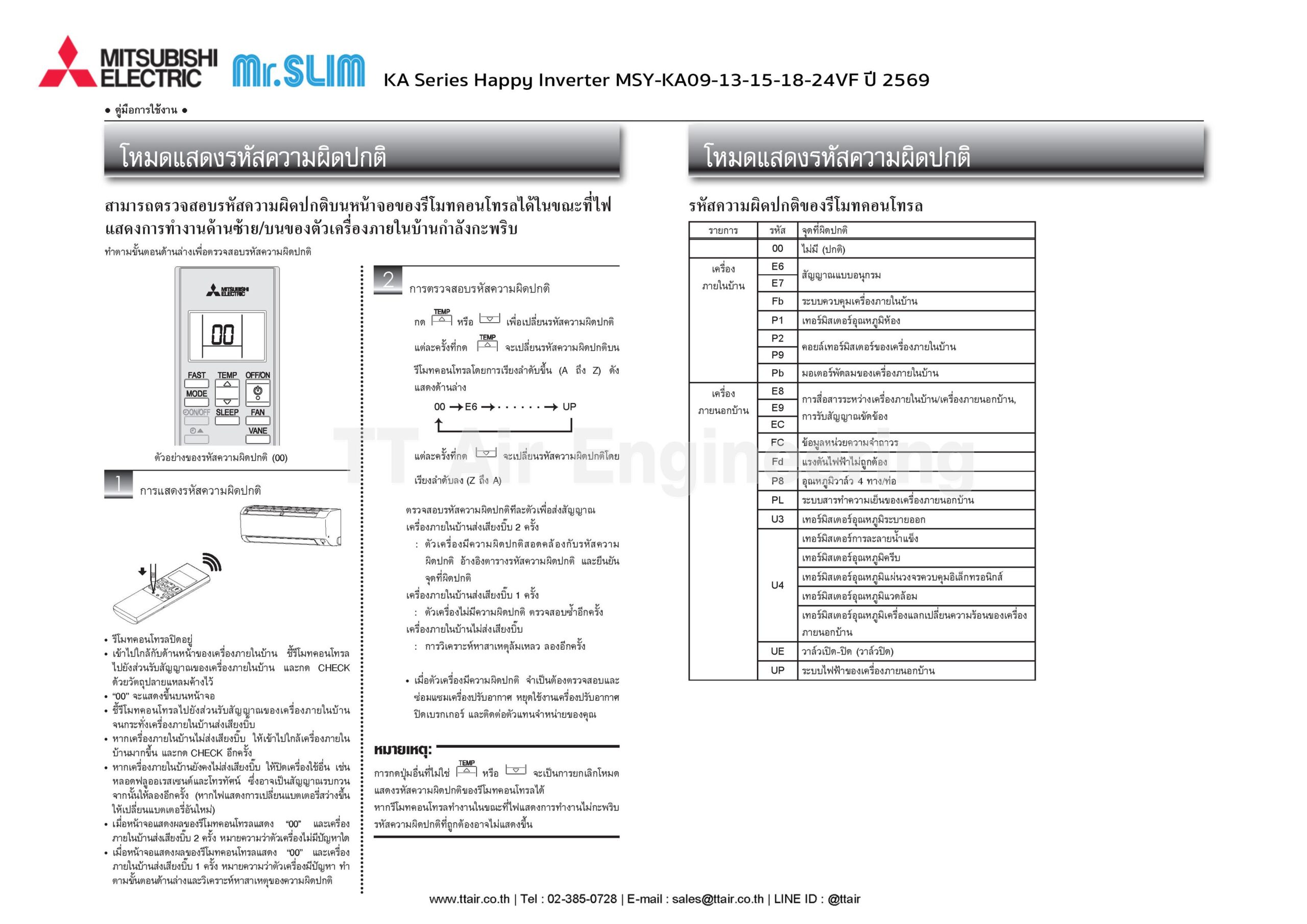 • Error Code แอร์ติดผนัง Happy Inverter