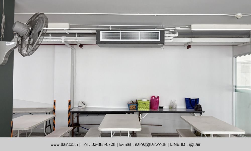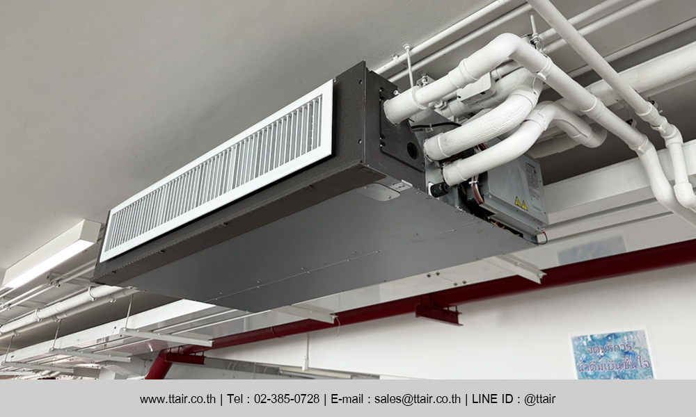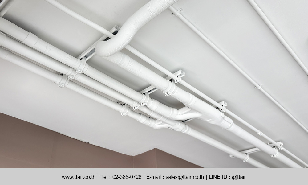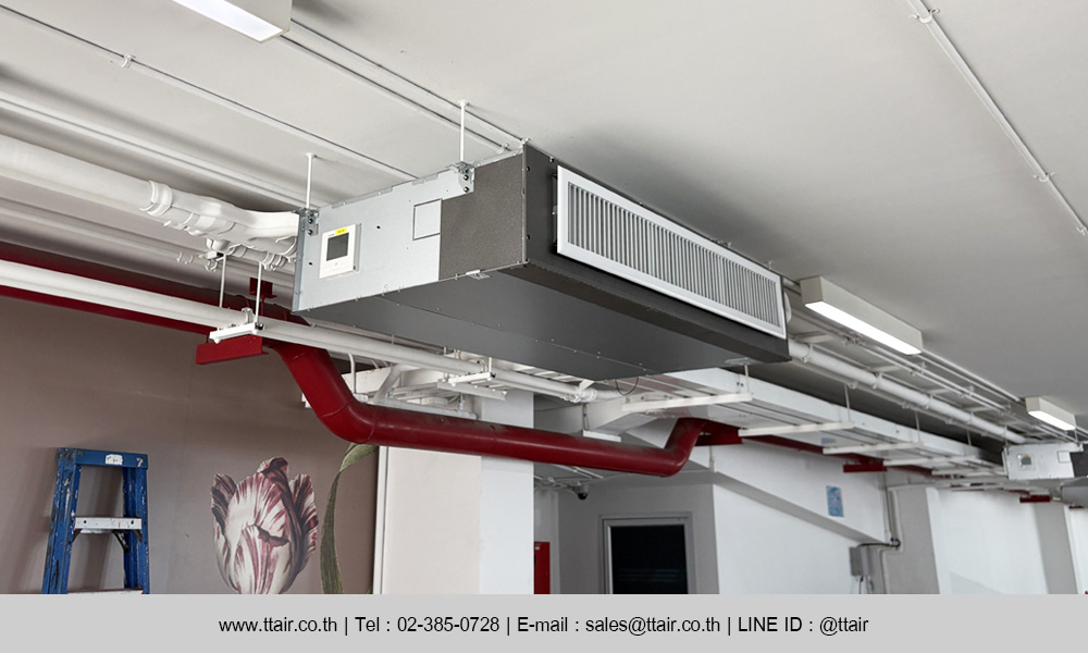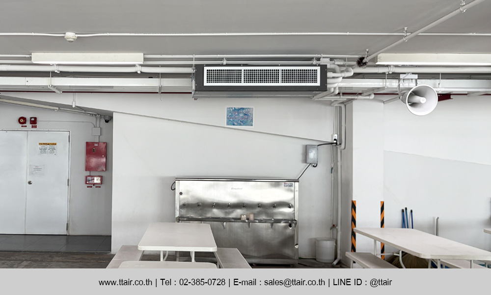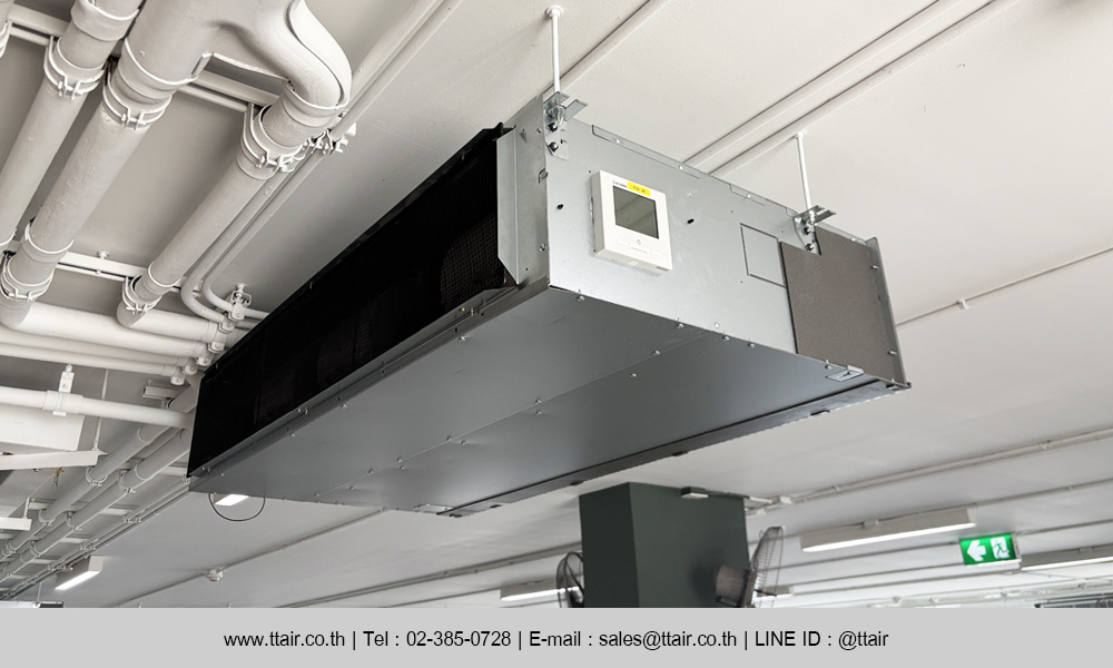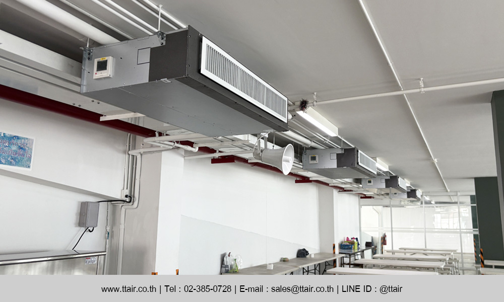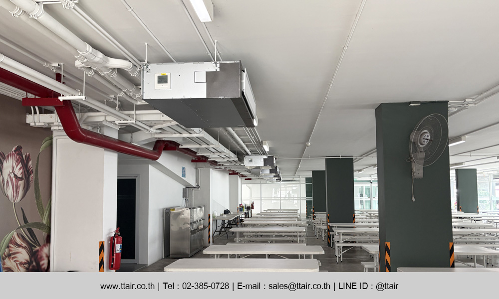 ผลงานติดตั้งแอร์ระบบ VRF แบบต่อท่อลม (Concealed Duct Type) ในโรงอาหาร โชว์งานระบบติดตั้ง โชว์การเดินท่อน้ำยา