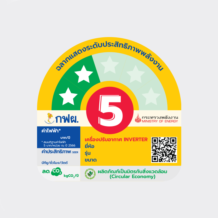 ได้รับฉลากประหยัดไฟเบอร์ 5 ระดับ 2 ดาว ด้วยค่า SEER สูงสุดที่ 20.60* ให้คุณประหยัดค่าไฟฟ้าในทุกการใช้งาน (*ในรุ่น FTKC09YV2S)