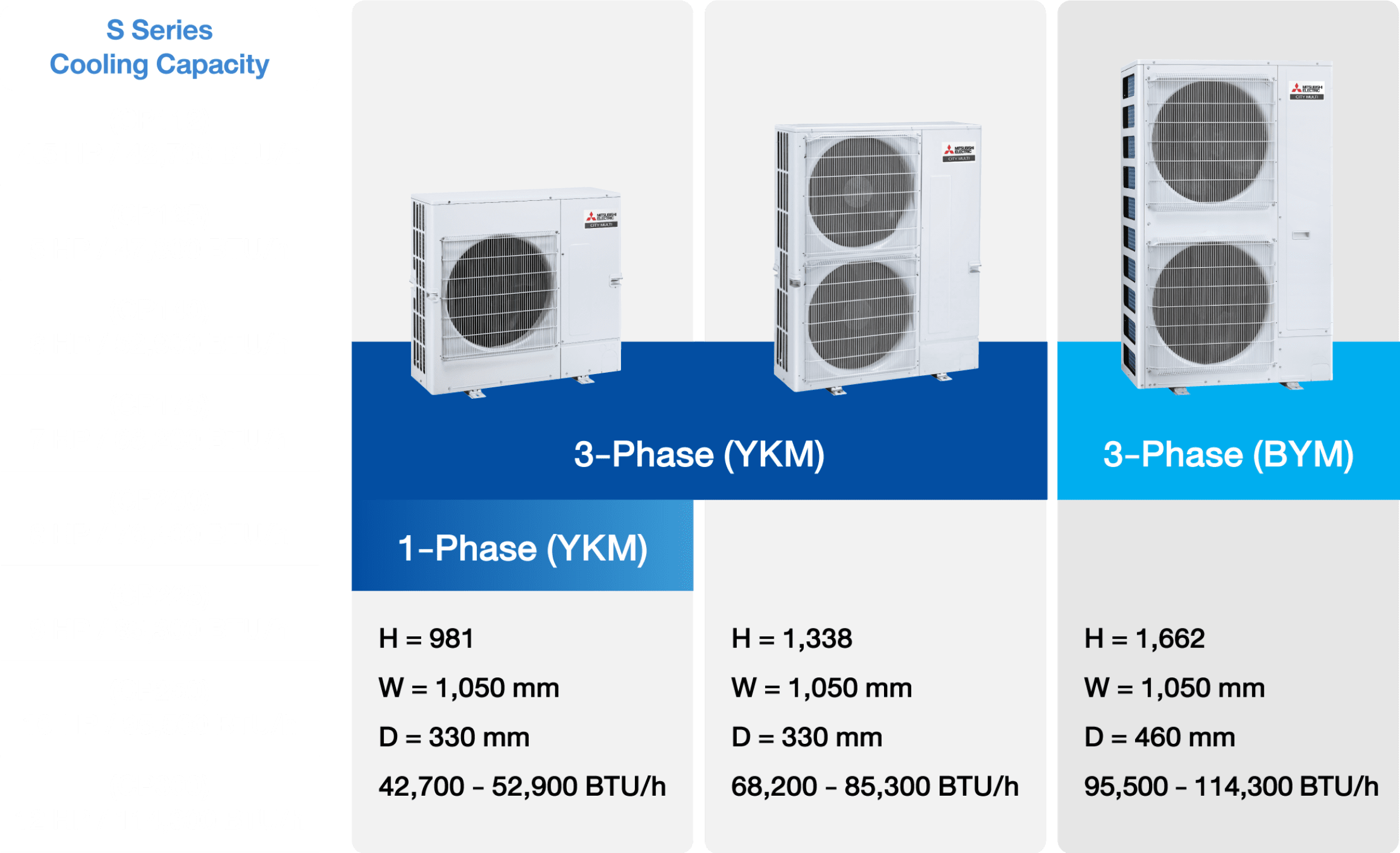 ระบบปรับอากาศน้ำยาแปรผัน VRF ของ MITSUBISHI ELECTRIC คือระบบปรับอากาศสำหรับอาคารรูปแบบใหม่ สำหรับรุ่น S Series เหมาะสำหรับบ้านพักอาศัย หรือคอนโดสูง รุ่นนี้จะมี Ambient Temperature Operation ถึง 52 องศาเซลเซียส เพื่อความเสถียรภาพของระบบ ซึ่งระบบยังสามารถทำงานได้แม้ในสภาวะอากาศสูง