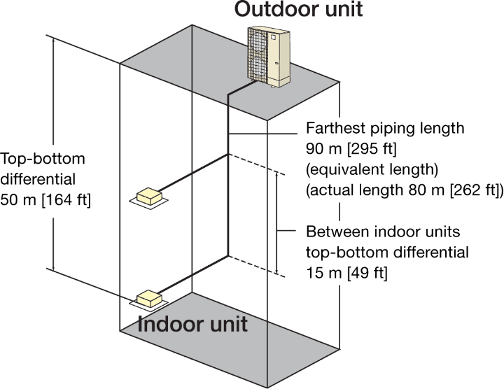 เดินท่อไกล กระจายได้ทั่วอาคาร สามารถเดินท่อรวมทั้งระบบได้ไกลถึง 310 เมตร โดยคอนเดนซิ่งยูนิต สามารถต่อแฟนคอยล์ยูนิตได้สูงสุดถึง 29 ชุด หรือ 130% ของกำลังทำความเย็น