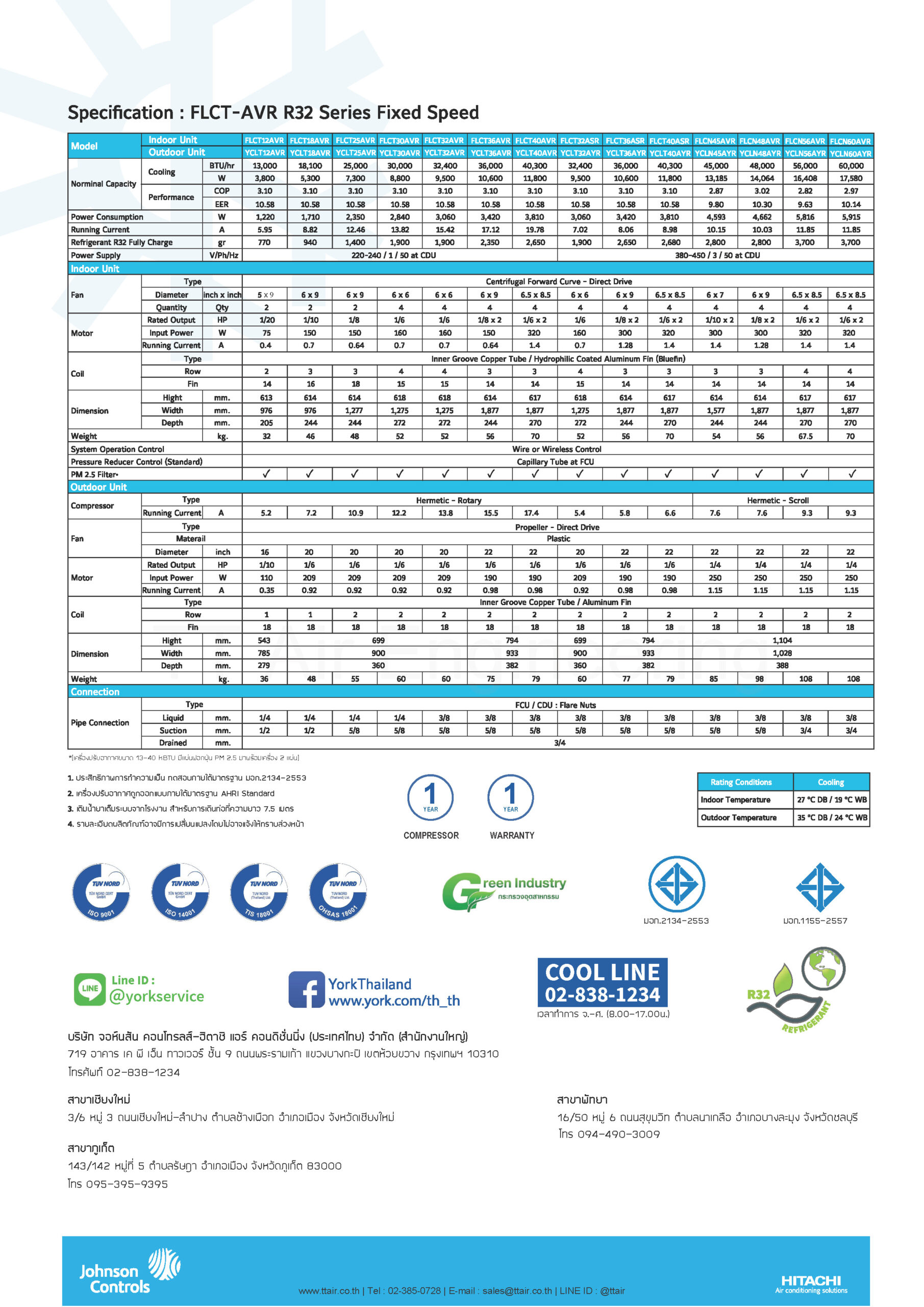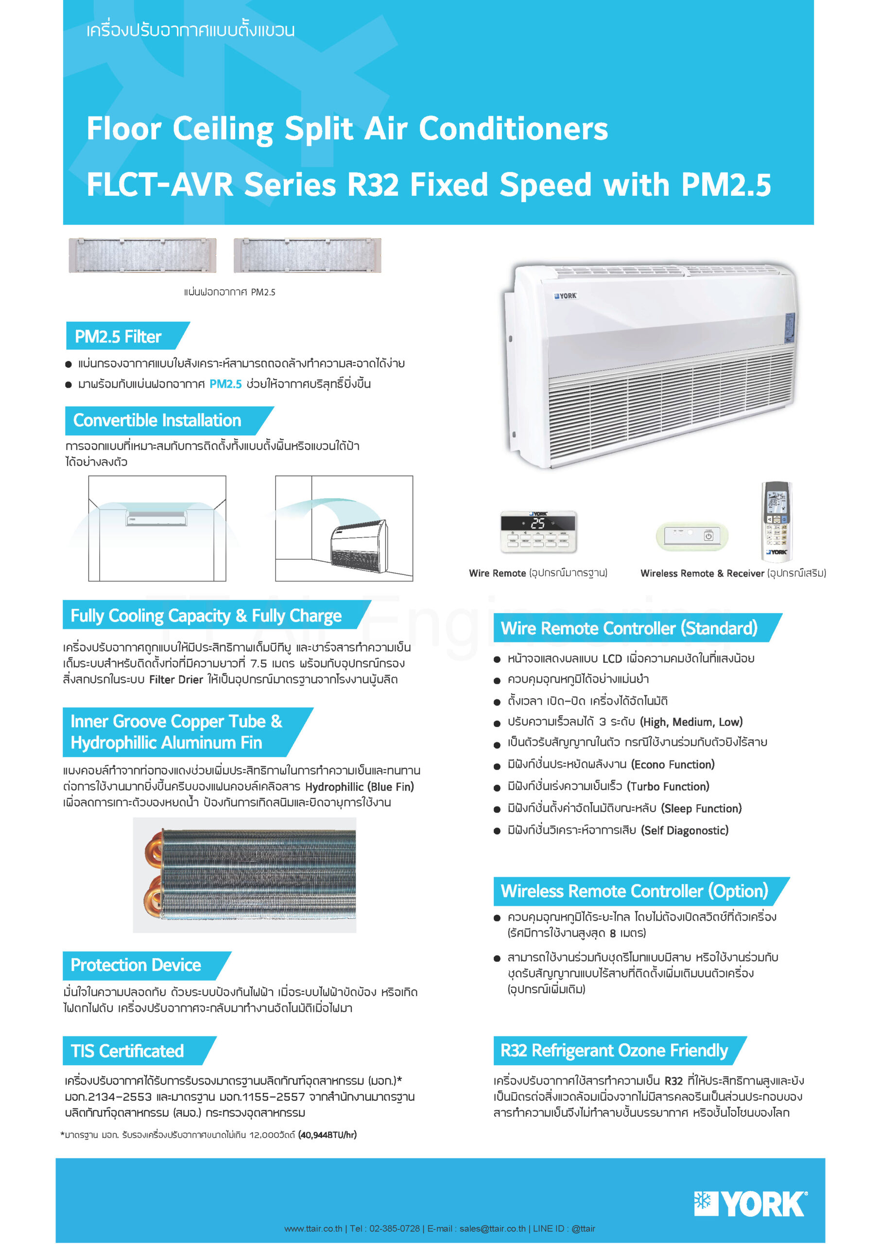 รายชื่อรุ่นแอร์แขวนใต้ฝ้า YORK FLCT-AVR Series